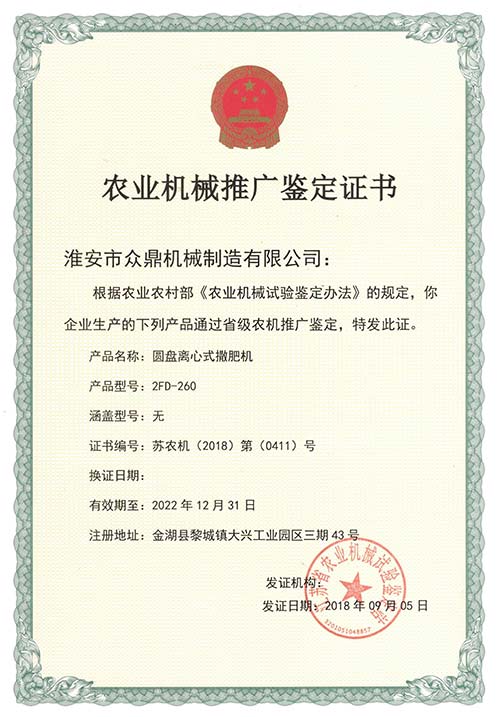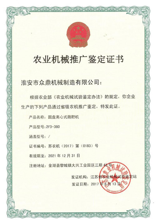 農(nóng)業(yè)機(jī)械推廣鑒定證書(shū)2FD-380