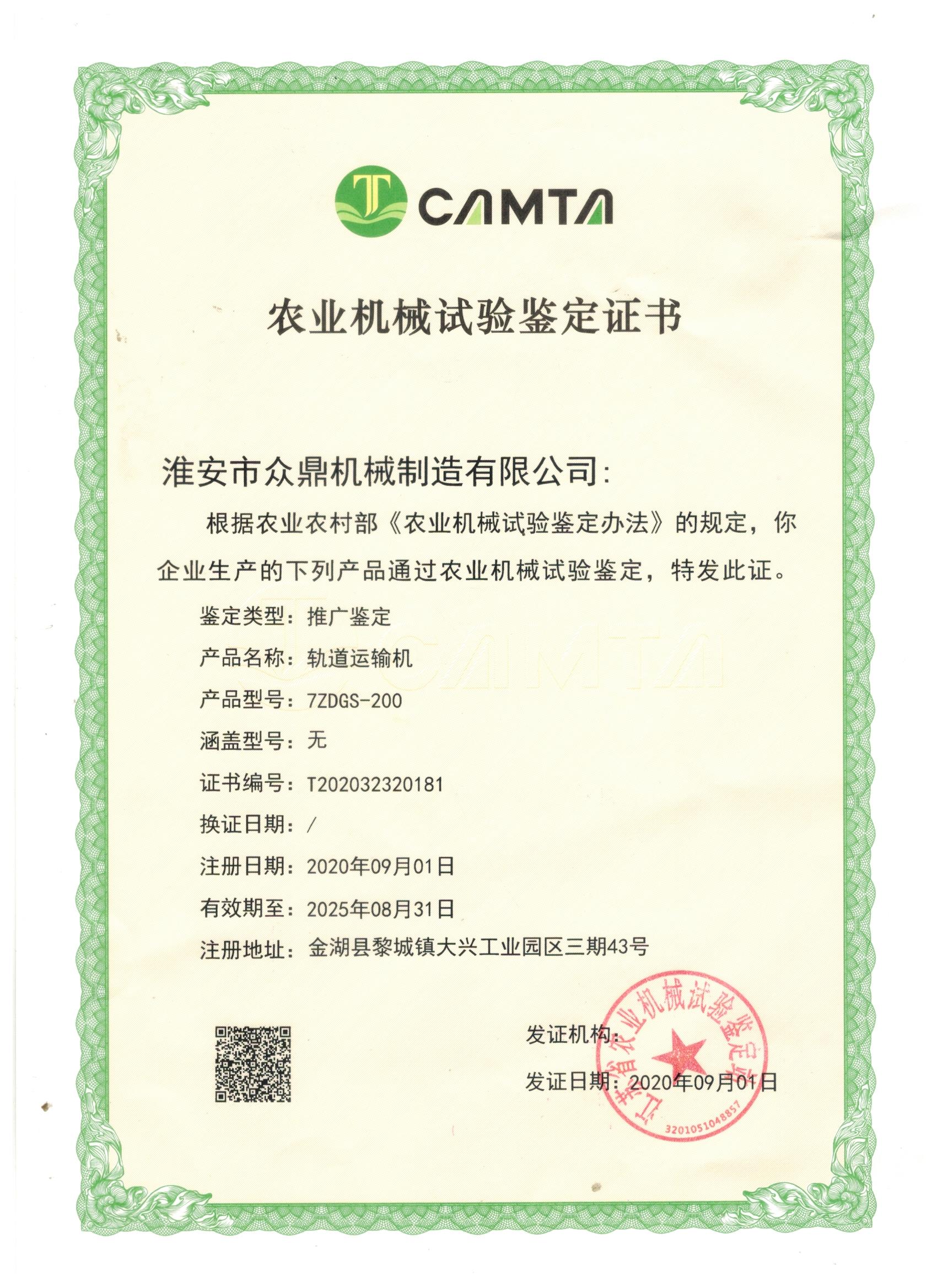 農(nóng)業(yè)機(jī)械推廣鑒定證書(shū)7ZDGS-200單軌運(yùn)輸機(jī)