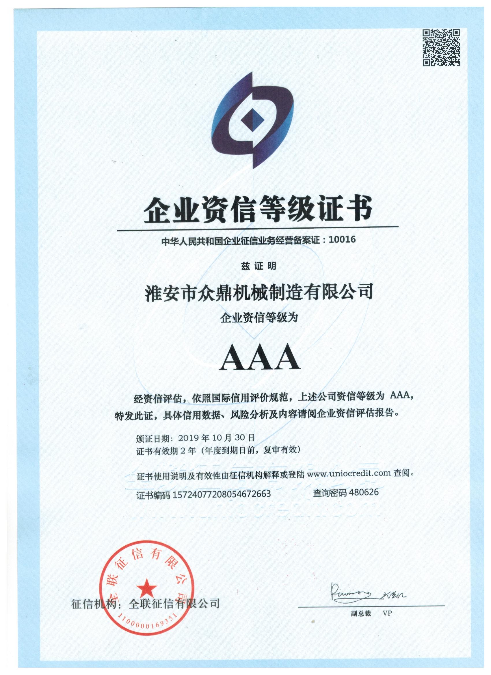 企業(yè)資信等級(jí)證書(shū)3A認(rèn)證證書(shū)