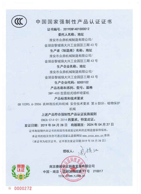 國(guó)家強(qiáng)制認(rèn)證3C 認(rèn)證證書(shū) |